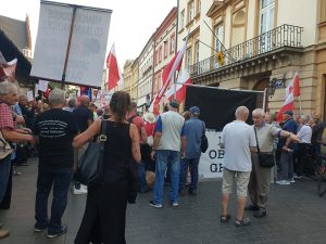 Konferencja obyła się w niespodziewanej synchronizacji z innymi środowiskami prawicowymi protestującymi przed Konsulatem Generalnym Republiki Federalnej Niemiec na ulicy Stolarskiej w Krakowie. Środowiska te podobnie jak Ruch Narodowy domagały się od naszego zachodniego sąsiada zadośćuczynienia za popełnione zbrodnie w formie wypłacenia reparacji wojennych.