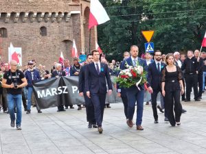 W piątek, 11 lipca, Ruch Narodowy Kraków uczcił Narodowy Dzień Pamięci Ofiar Ludobójstwa dokonanego przez OUN i UPA na obywatelach II RP. Obchody rozpoczęły się od symbolicznego gestu, wręczania kwiatów lnu, nawiązujących do pamięci o pomordowanych. Następnie ulicami miasta przeszedł Marsz Pamięci Ofiar Rzezi Wołyńskiej. Pod Pomnikiem Nieznanego Żołnierza na placu Matejki złożyliśmy wieniec, upamiętniając tysiące niewinnych Polaków zamordowanych przez ukraińskich szowinistów oraz oddziały OUN, UPA i SS-Galizien.